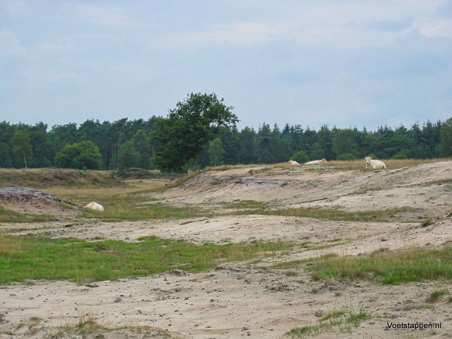 Het begin van de route loopt door een bos met veel varens waarna al spoedig het eerste zand opduikt met zijn heideplanten, hier zult u al spoedig de eerste koeien tegenkomen die zijn ingezet voor de begrazing van de gronden, ondanks het droge gebied zijn er ook vennetjes aanwezig.