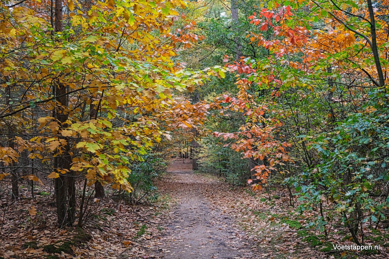 Via verschillende bospaden lopen we verder door een bosrijke omgeving en na enige tijd komen we langs Austerlitz en steken we even later de Traayweg over. Daarna wandelen we verder over verschillende bospaden en komen bij een lang uitgerekt heidegebied.