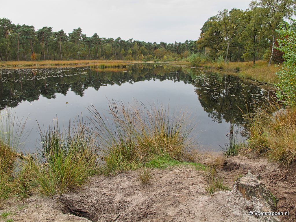 Dan komt de Kleine Aderven in zicht een fraai gelegen bosven midden in de bossen. We lopen langs de oevers van deze ven en komen bij een parkeerplaats