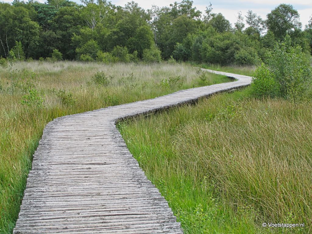 Daarna wordt het gebied kilometers lang wisselend beheerst door moerassen, varen- of heidevelden en waterplassen.