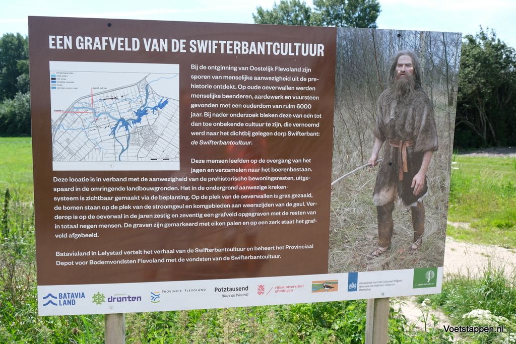 Langs het wandelpad staan verschillende informatiepanelen over dit Rivierduingebied en de Swifterbantcultuur.